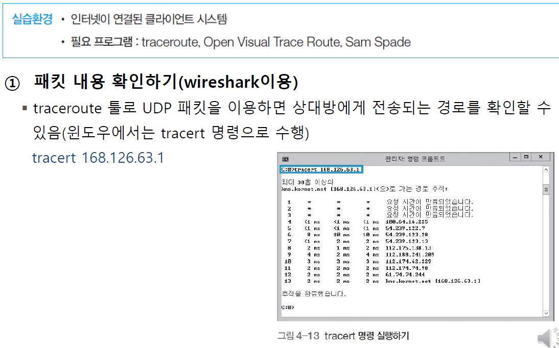 [실습 4 - 5] traceroute 를 이용해 라우팅 경로 확인하기