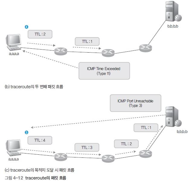 ttl=4로 놓고 4홉만에 목적지가 있다면 해당 응용에서 보낸 포트가 목적지에서 서비스 하지 않은 포트를 보낼 것입니다.