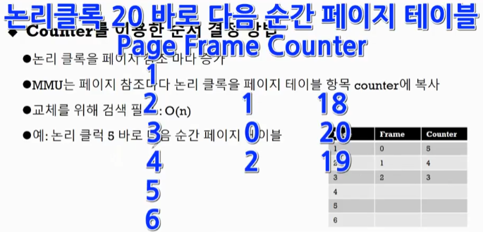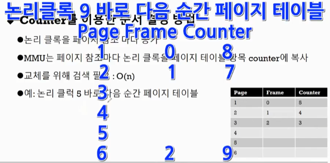 페이지 참조가 한번 일어나면 논리 클록이 1식 증가합니다.