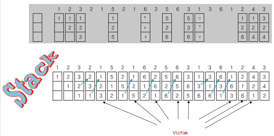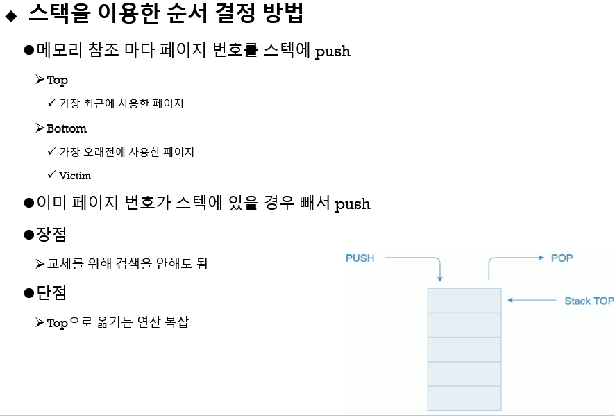 메모리 참조 마다 페이지 번호를 스텍에 push 합니다.