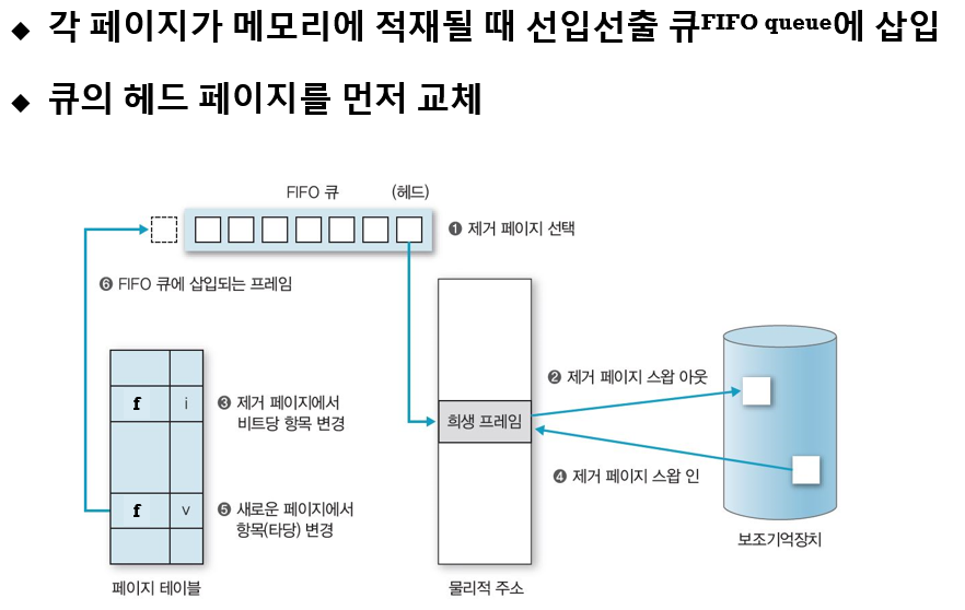 페이지 교체 알고리즘 종류 - 선입 선출 교체 알고리즘