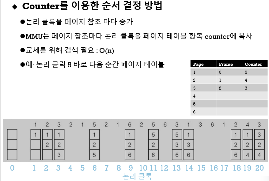 최근 최소 사용 교체 알고리즘 - Counter를 이용한 순서 결정 방법