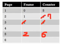 1번 페이지는 0번 프레임에 들어있습니다. 그리고 카운터는5 입니다.
