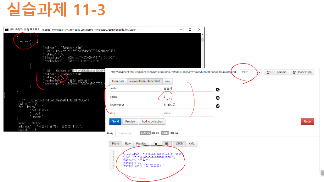특정 review를 업데이트 하는 경우 2가지가 있습니다.