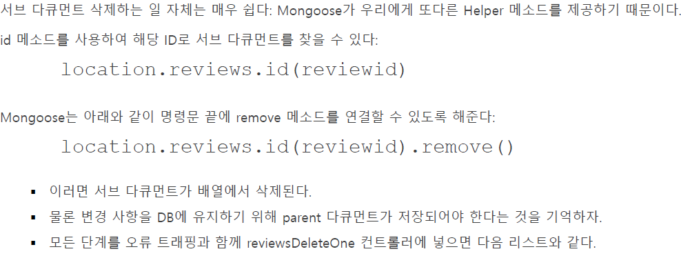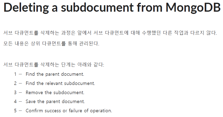 다큐먼트를 삭제할 수도 있고 서브 다큐먼트를 삭제할 수 있습니다.