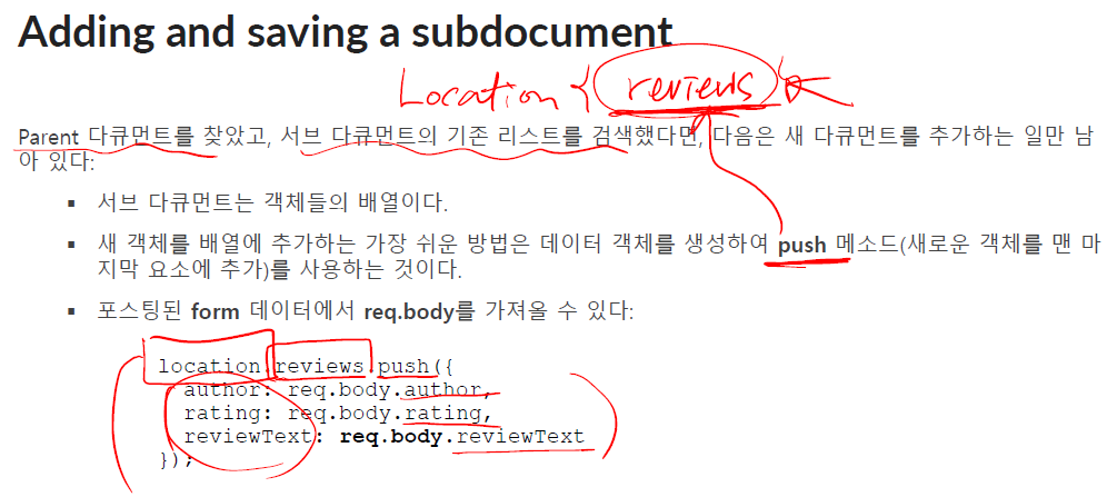 찾고 싶은 서브 다큐먼트는 reviews 입니다.
