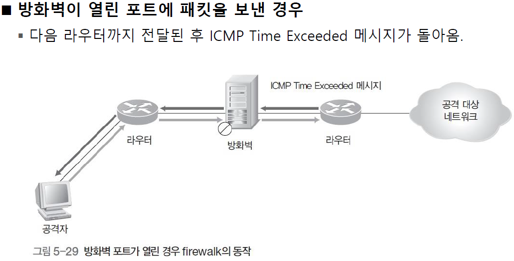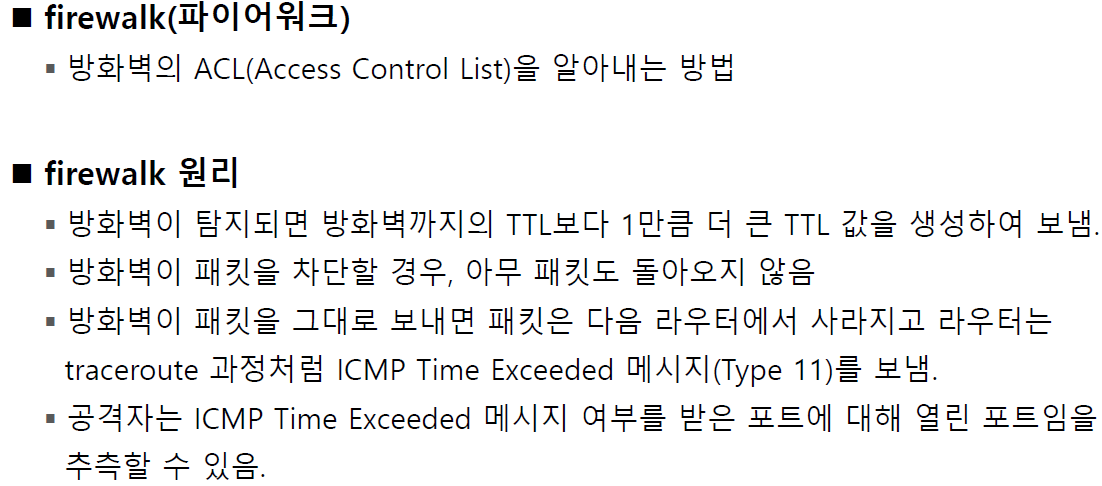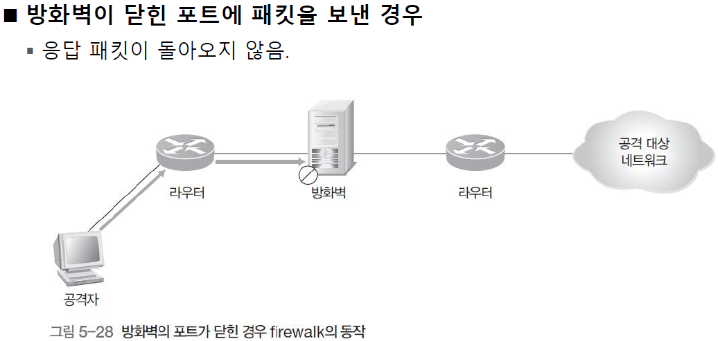 만약 차단이 되면 firewalk라면 아무런 메세지가 오지 않을 것입니다.