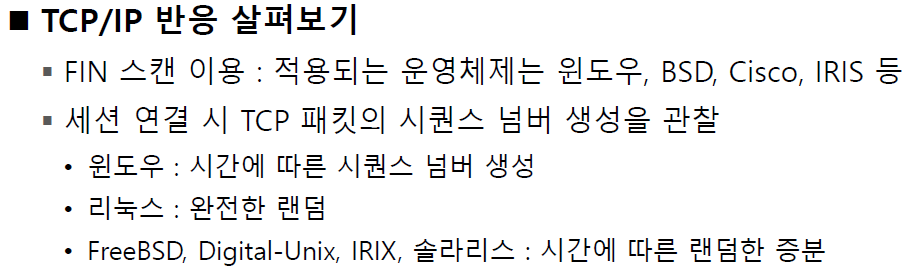 tcp/ip 반응을 보고 운영체제가 어떤것이다 하고 추정을 할 수 있습니다.