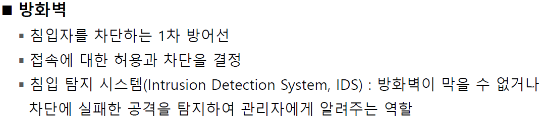 방화벽에서도 접속 제어를 합니다.(필터링을할지, 통과시킬지)