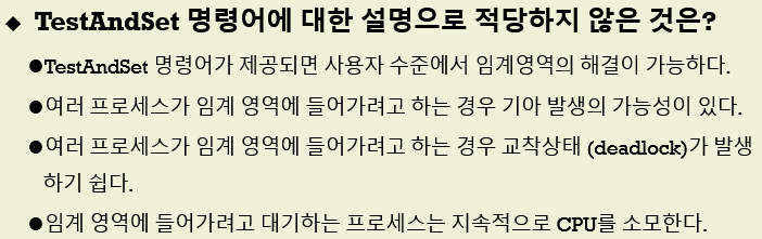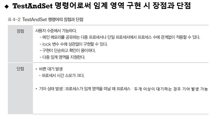 TestAndSet 명령어로써 임계 영역 구현 시 장점과 단점