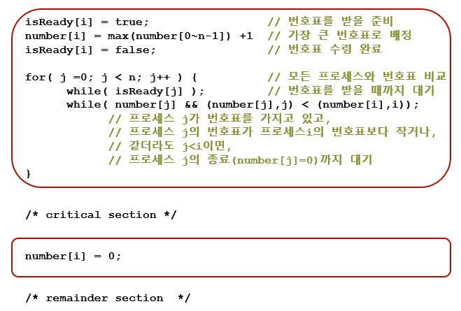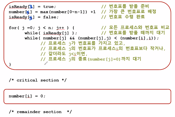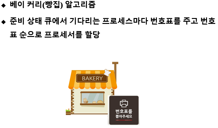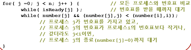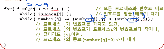 나보다 번호표가 작거나 같더라도 프로세스 번호가 작으면 기다립니다.