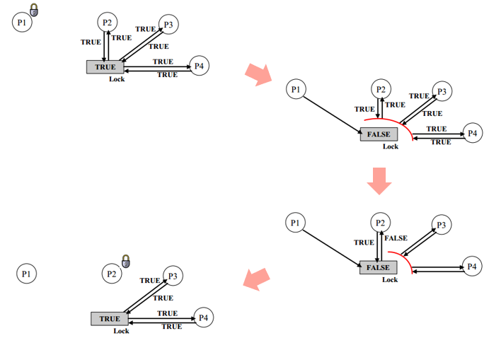 그러면 그 프로세스가 임계영역을 차지합니다. (다른 프로세스는 true를 계속 받습니다.)