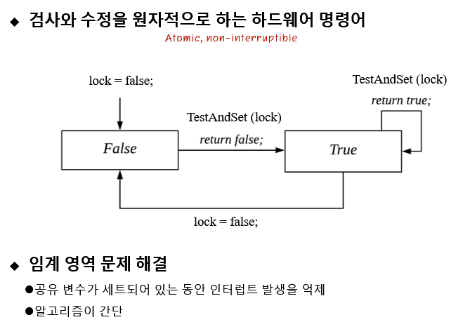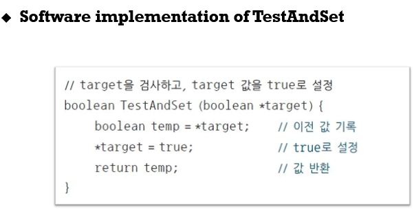 하드웨어 명령어인 TestAndSet 명령어를 봐봅시다.