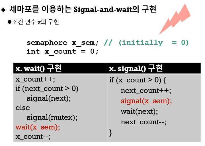 모니터에서의 signal은 signal(x_sem)을 보내면 내가 wait()해야 합니다.