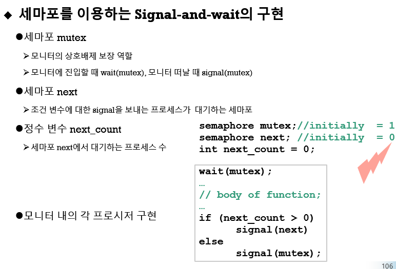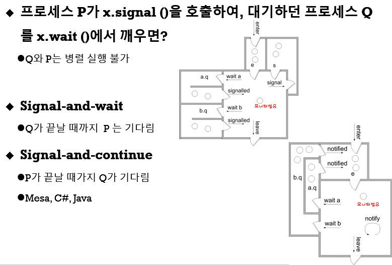 모니터는 signal연산시 두 프로세스중 하나만 실행합니다.