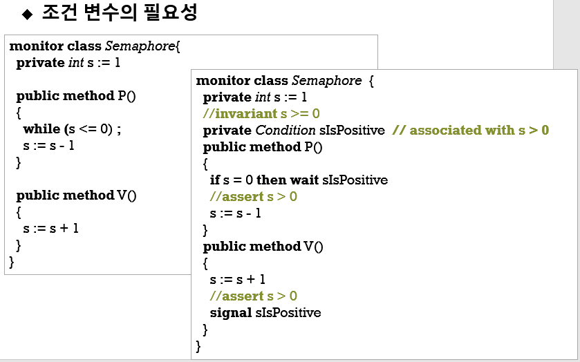 - 조건변수는 내부적으로 세마포로 구현되어 있습니다.