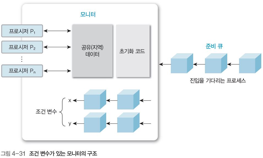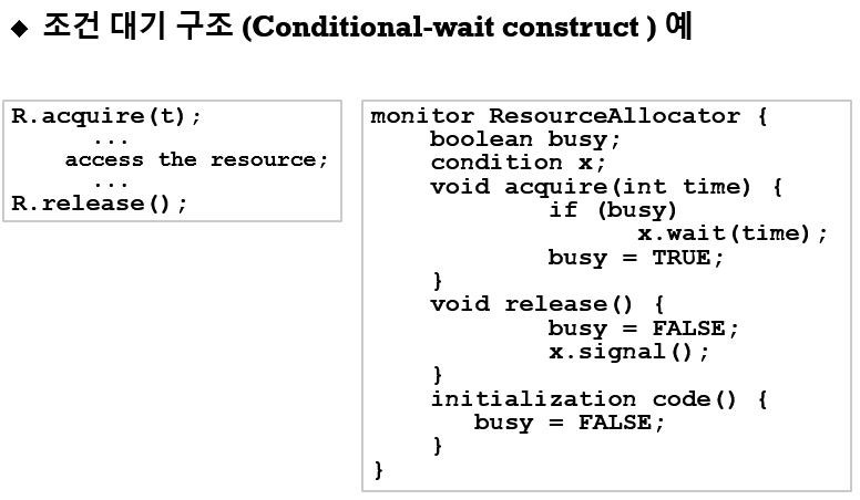 - 모니터 안에는 조건 변수와 프로시저가 있습니다.