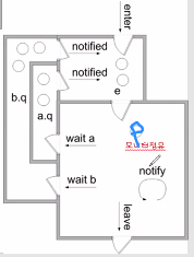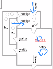 P가 signal을 보내면 a.q에서 다시 모니터에 들어가는 큐 줄에 들어갑니다.