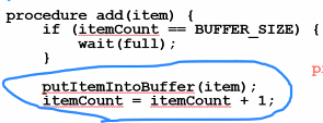 버퍼 사이즈가 꽉차있으면 wait(full)에 가서 기다리고 있습니다.