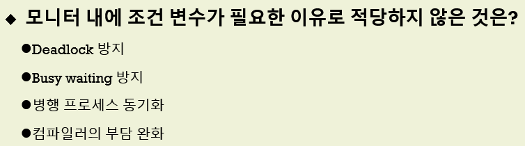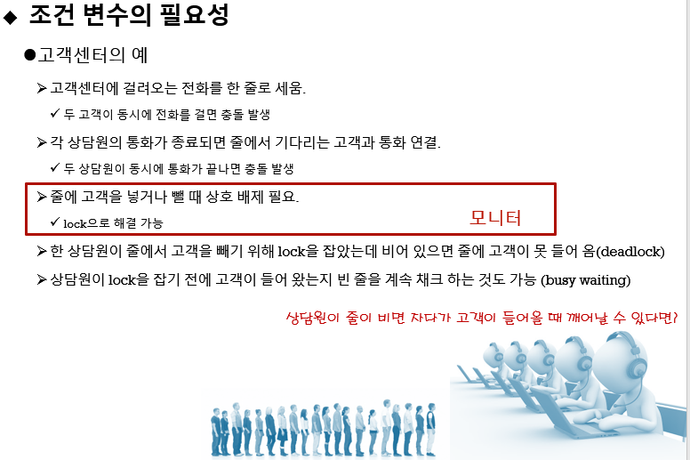 하지만 조건변수가 필요한 이유는 상호배재와 바쁜 대기를 해결하기 위함 입니다.