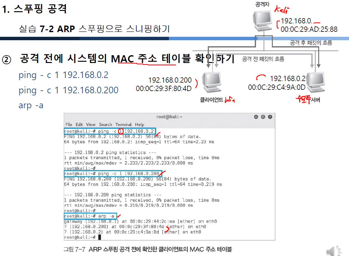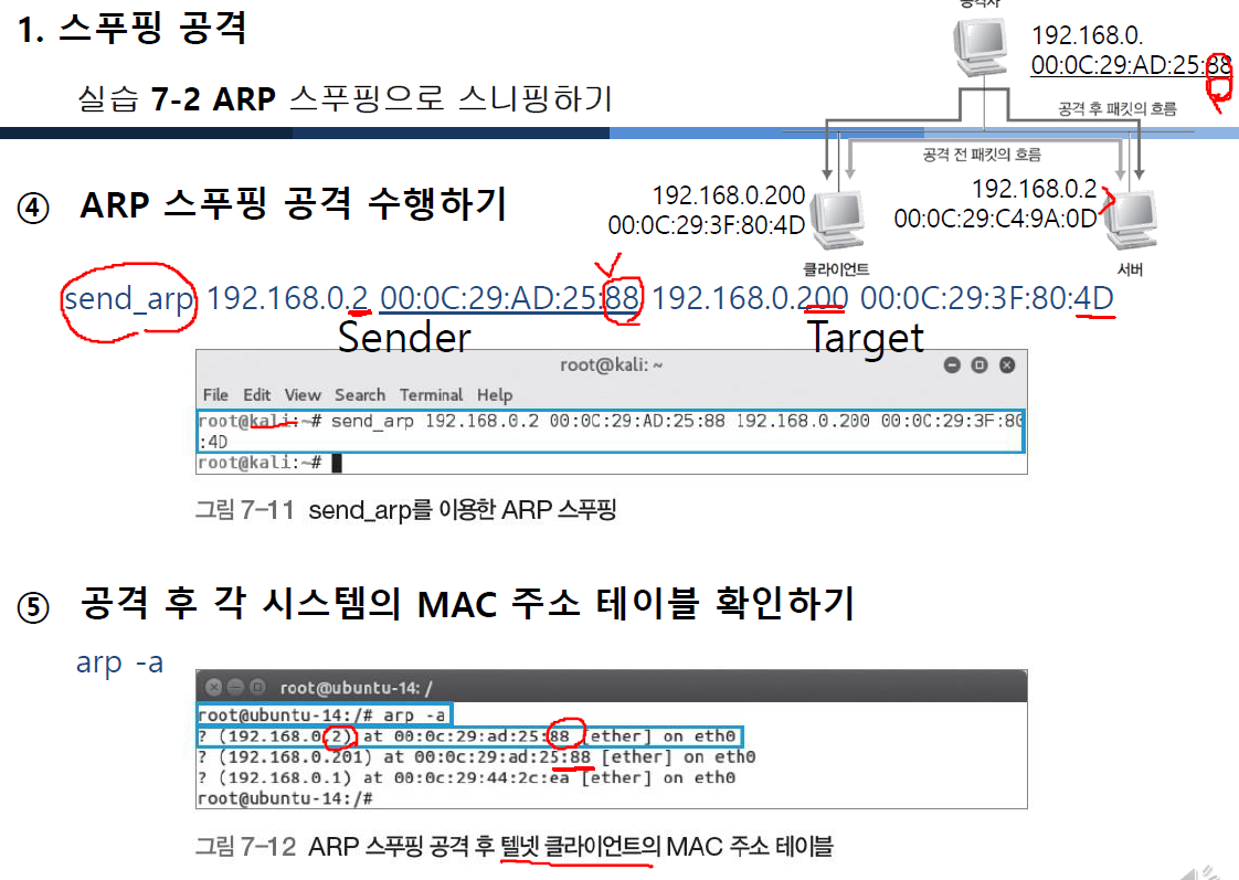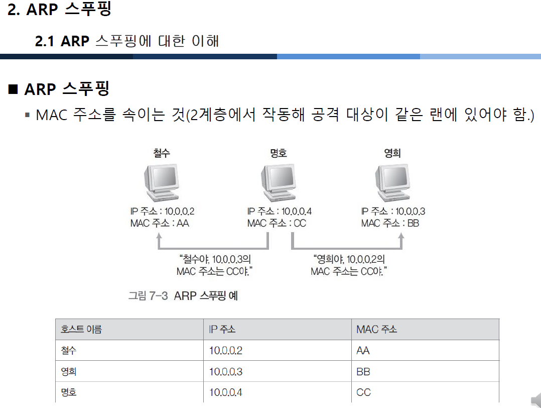 ARP 스푸핑이면 ARP를 속이고