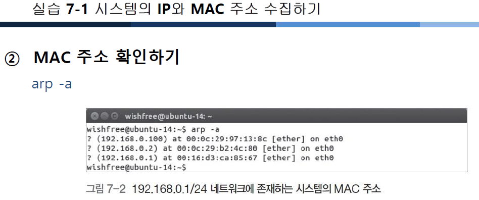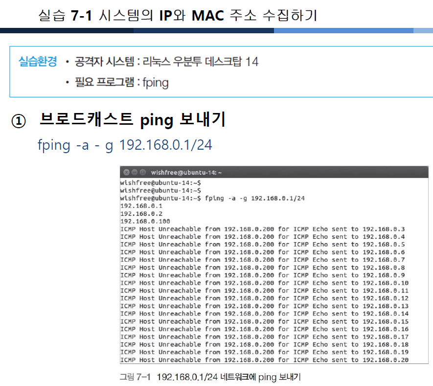 - 브로드캐스트 ping 을 네트워크에 뿌려 그에 답하는 모든 시스템에 대한 MAC주소값을 시스템 캐시에 기록함