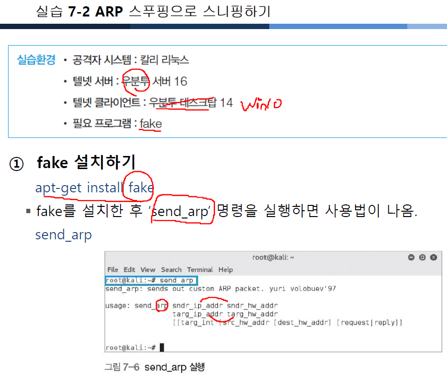 kali에서 fake로 실행할 수 있는 send_arp를 실행합니다.