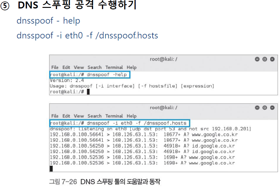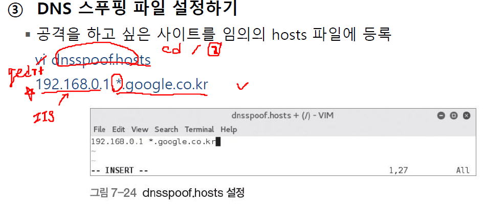 위조될 ip를 적고, 위조된 ip를 보낼 dnsspoof.hosts 파일을 줍니다.