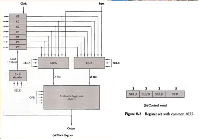 ALU와 레지스터 집합 관계는? 어떤 레지스터에서 데이터를 가져와서ALU에서 계산한 다음 어떤 레지스터로 보낼 것을 정하는 것