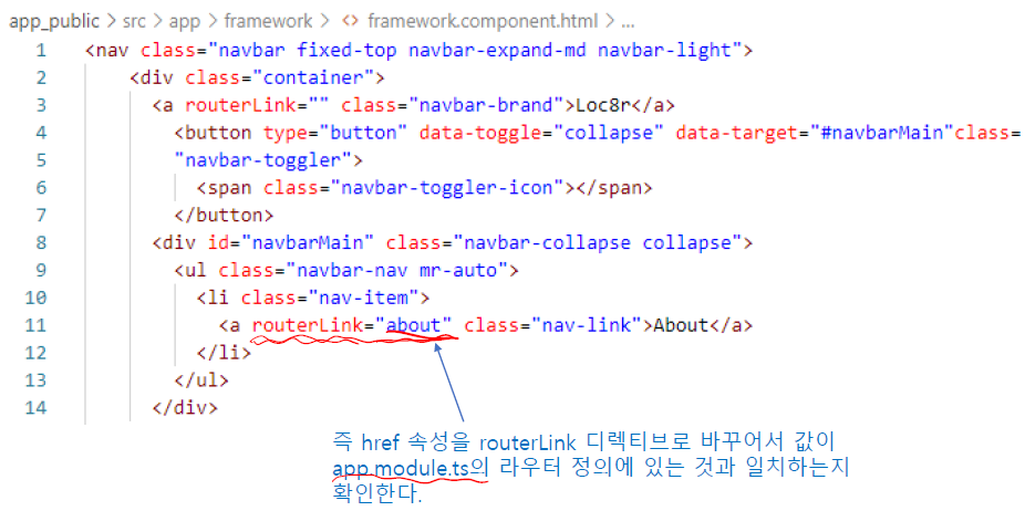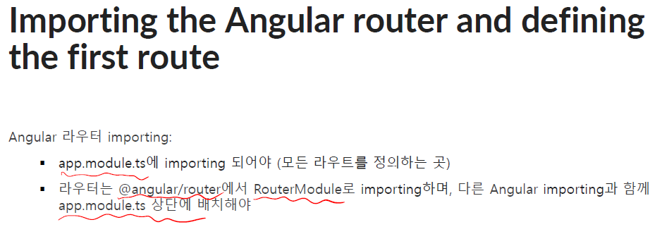 - 페이지 사이를 순회학 위한 angular 라우터를 추가합니다.
