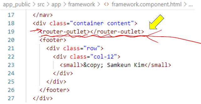 앵귤러 라우터를 사용해야지고 라우팅을 해줘야 합니다.