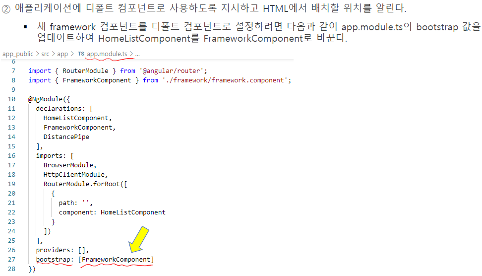 디폴트 컴포넌트로 FrameworkComponent를 써라 라고 지정해 줍니다.