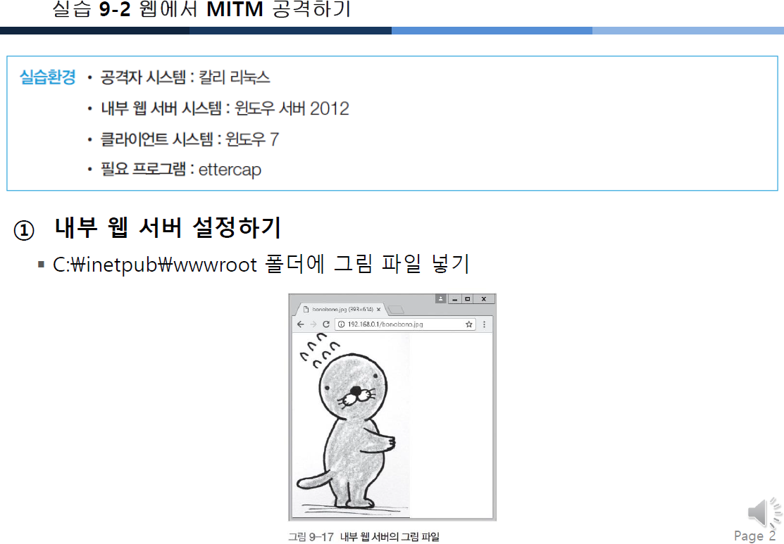 웹서버가 있다면 칼리가 가로채어서 해당 페이지를 바꿉니다.