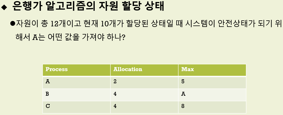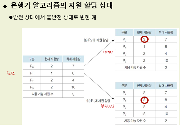 - 자원 할당했을 때 불안전 상태가 되면 할당 하지 않는 것