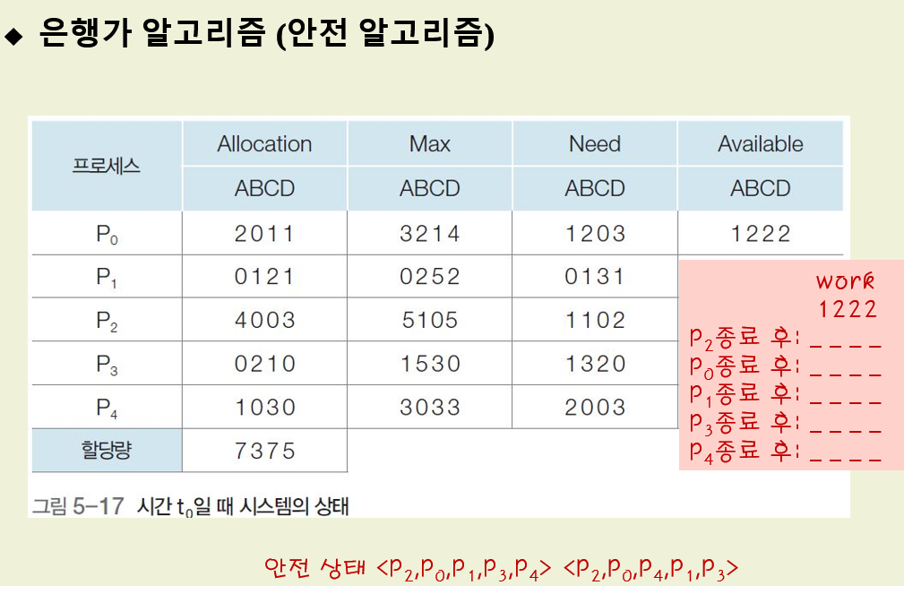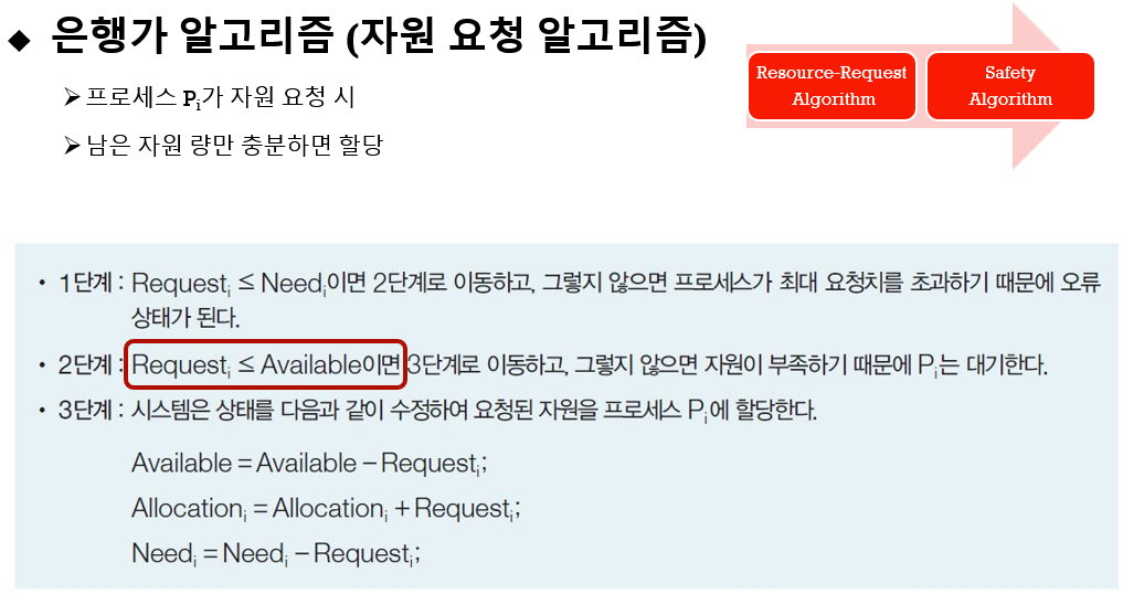 그리고 할당해도 되는지 안되는지 safety algorithm을 봐야 합니다.