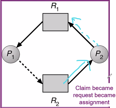 P1을 끝낼라고 하면 R2를 할당해줘야 하는대 할당을 못합니다.