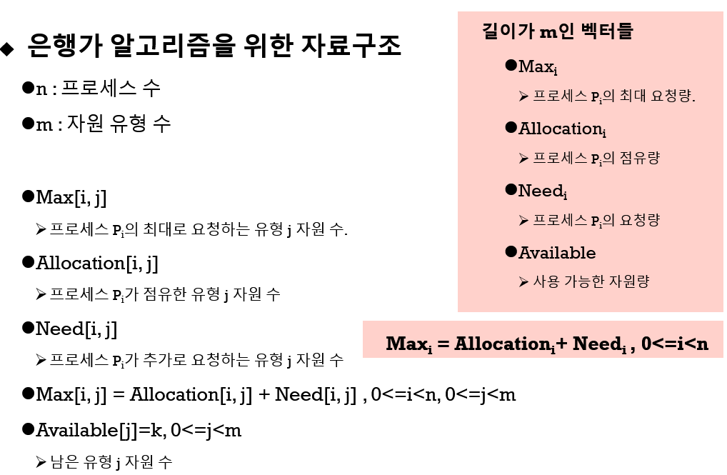 - 프로세스 Pi가 추가로 요청하는 유형 j 자원 수