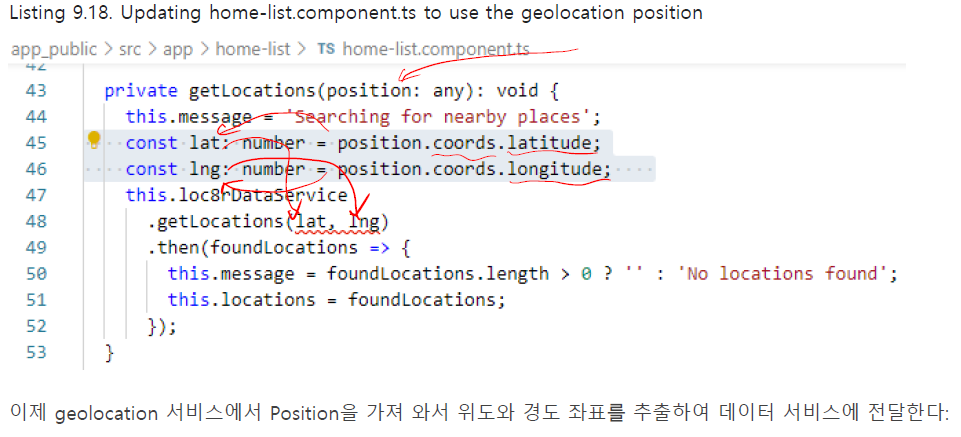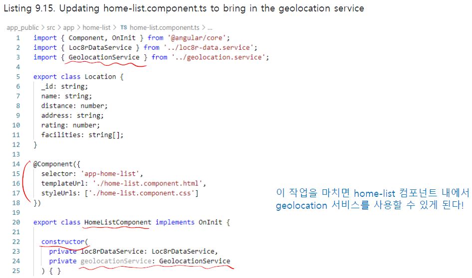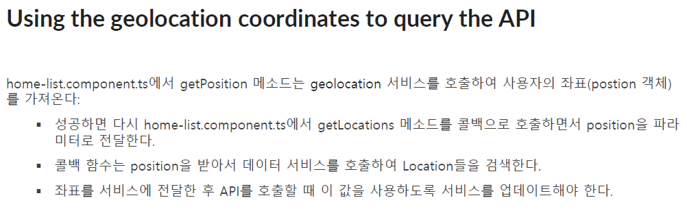 이 작업을 마치면 home list 컴포넌트 내에서 geolocation 서비스를 사용할 수 있게 된다