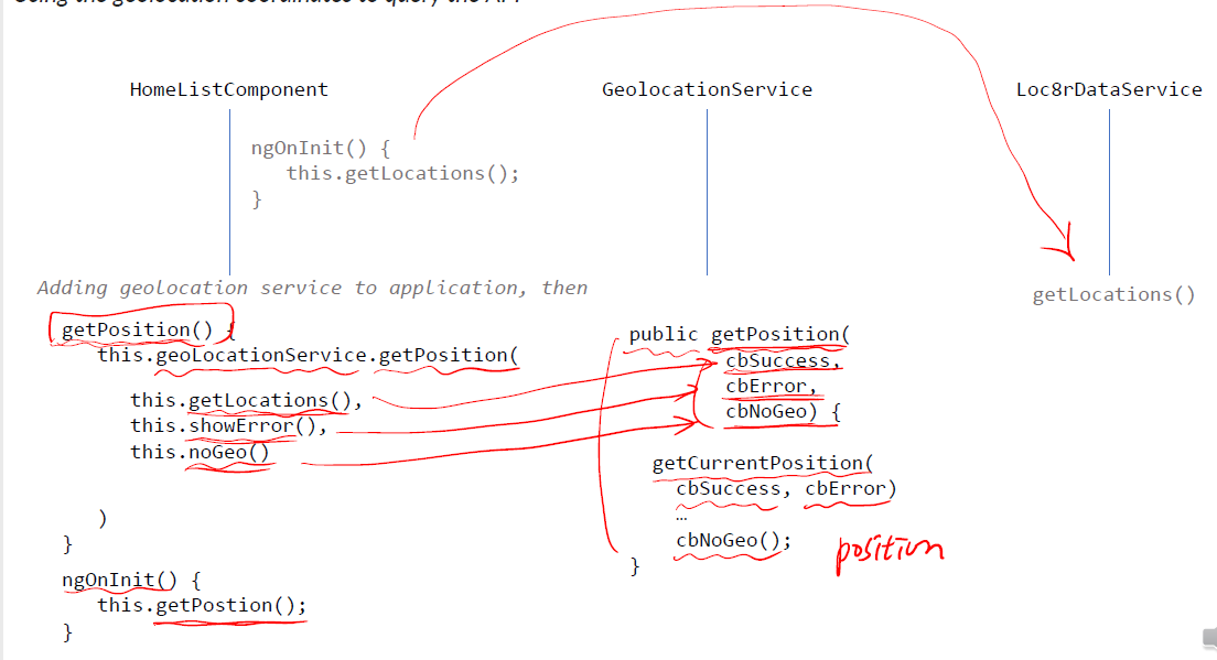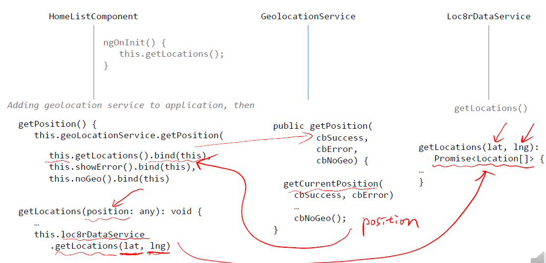 homelist에서 GeolocationService에 있는 getPosition 호출을 하기 위해서 3개의 파라미터를 전달해줘야 합니다.