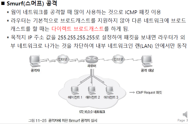 공격자가 172.16.255.255를 보내면 라우터가 172.16 네트워크로 브로드캐스트를 보냅니다.