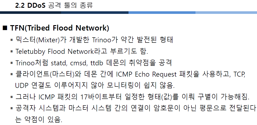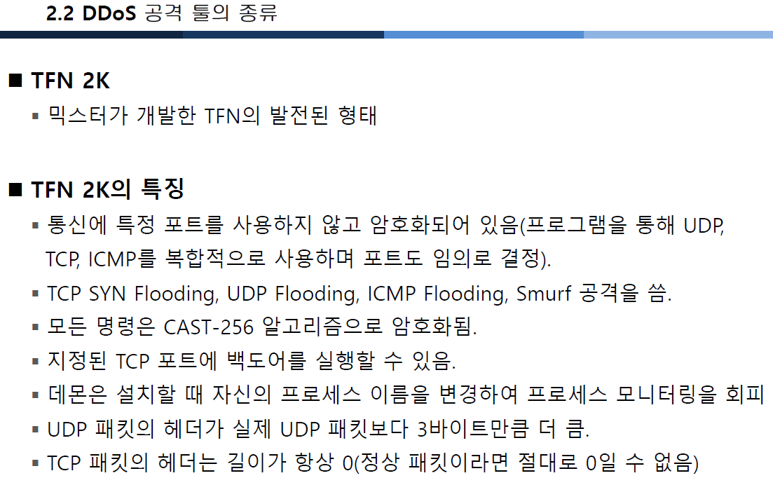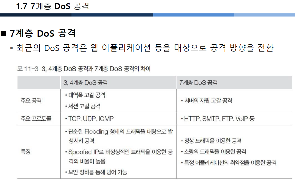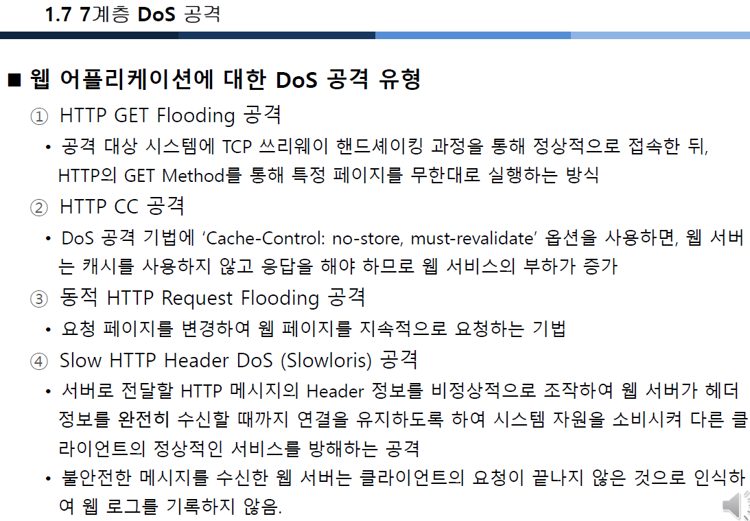 - 정상적인 TCP/UDP 연결 기반의 공격으로 , 변조된 IP 가 아닌 정상 IP를 이용한 접속 요청 후 공격이 진행되어 정상 사용자의 트래픽과 구분하기가 어려워 탐지가 어려움