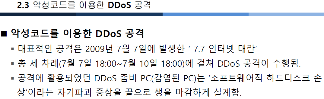 - 특정 서비스의 취약점을 이용하여 공격 현재까지는 웹 서비스의 취약점을 이용한 공격이 주를 이루고 있음