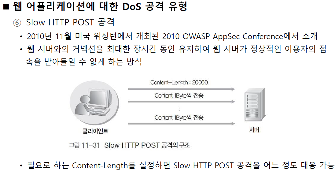 웹서버와 연결을 계속 유지하는 공격입니다.