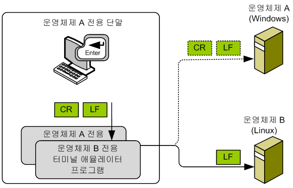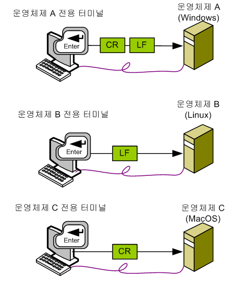운영체제에 따른 단말로부터의 생성되는 제어 문자의 차이점
