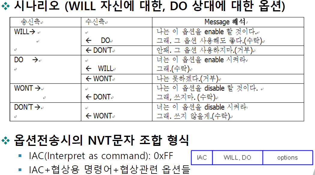 IAC - 커맨드 내용을 해석한다, 커맨드에 대한 내용을 메시지가 시작하고 있어 라고 처음을 알려줍니다.