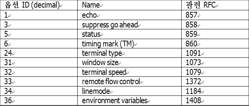 텔넷용 옵션들
