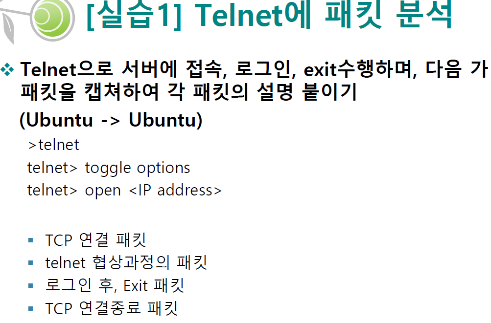 [실습 1] Telnet에 패킷 분석