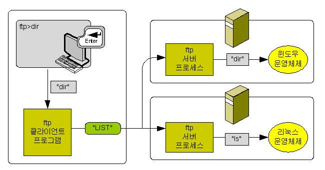 "LIST"라는 메시지를 윈도면 dir를 수행