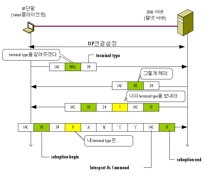 - 그래서 클라이언트는 sb, se사이에 0번을 넣어서 내 treminal type을 알려줍니다.