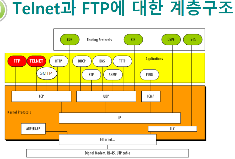 Telnet과 FTP에 대한 계층구조